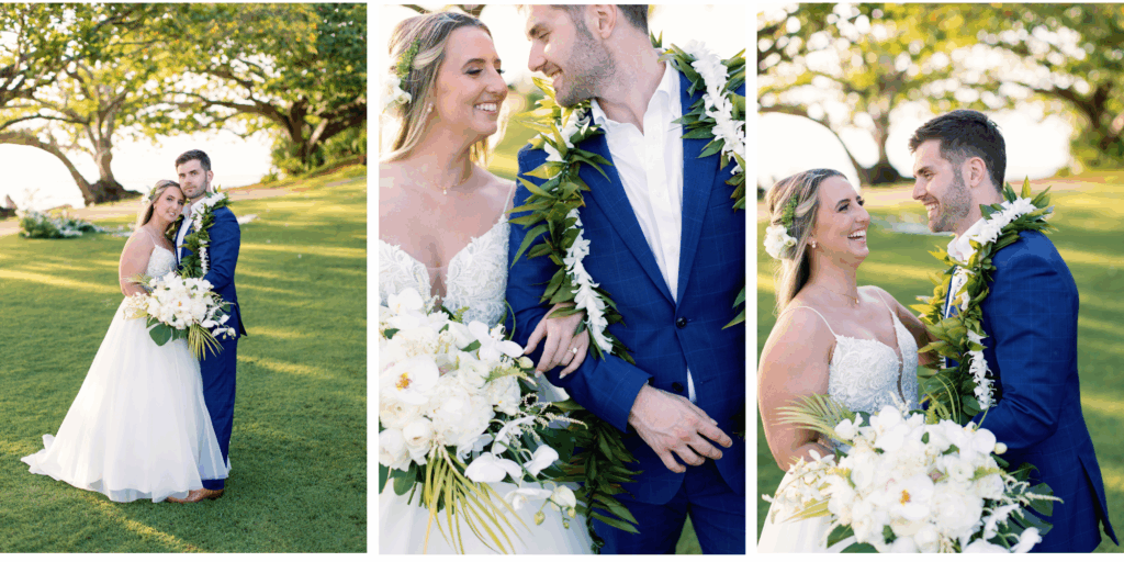 Their vows were heartfelt, and when they kissed as a married couple, the joy on their faces was radiant. They toasted with champagne under the glow of the Kamani Trees.