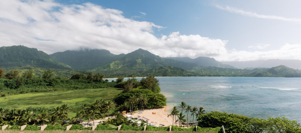 If you’re considering a Kauai elopement, 1 Hotel Hanalei Bay is an excellent choice for an elevated elopement. The location on Hanalei Bay offers some of the most stunning views on Kauai. The natural elegance of the property photographs beautifully without feeling overly styled. You can get ready, have your ceremony, take portraits in a variety of locations, and celebrate dinner all on-site.